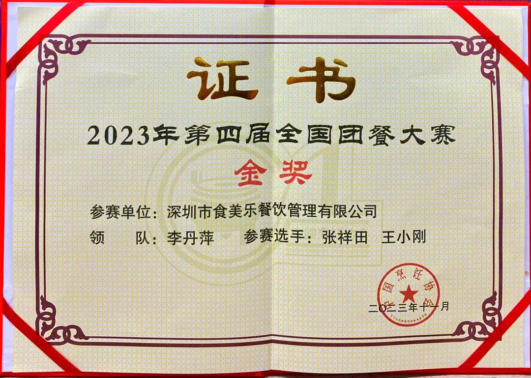 榮獲第四屆全國團(tuán)餐大賽金獎不僅是對食美樂參賽團(tuán)隊(duì)個人能力的肯定,更是對食美樂餐飲團(tuán)餐服務(wù)質(zhì)量的認(rèn)可。未來,食美樂餐飲集團(tuán)將繼續(xù)秉承著“客戶至上,服務(wù)致優(yōu)”的理念,持續(xù)深耕團(tuán)餐業(yè)務(wù),積極吸納更多餐飲人才,科學(xué)設(shè)計、合理配膳,構(gòu)建營養(yǎng)健康的膳食平臺,提升企業(yè)的綜合運(yùn)營能力,為服務(wù)民生和經(jīng)濟(jì)社會發(fā)展做出團(tuán)餐行業(yè)應(yīng)有的貢獻(xiàn)!